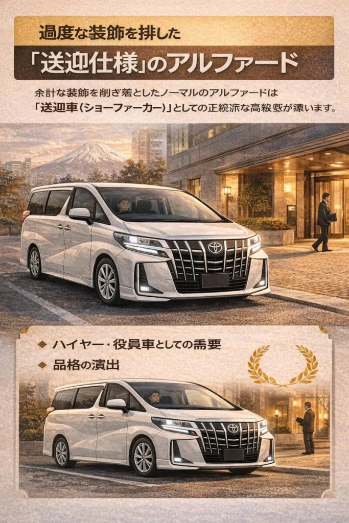 40系は純正デザインの完成度が高く、ノーマルこそが大人の余裕と実用性を両立する賢い選択です。