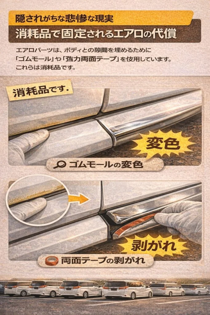 - デザインのバランス崩壊: 純正の計算されたラインが崩れ、取って付けたような違和感が出る。