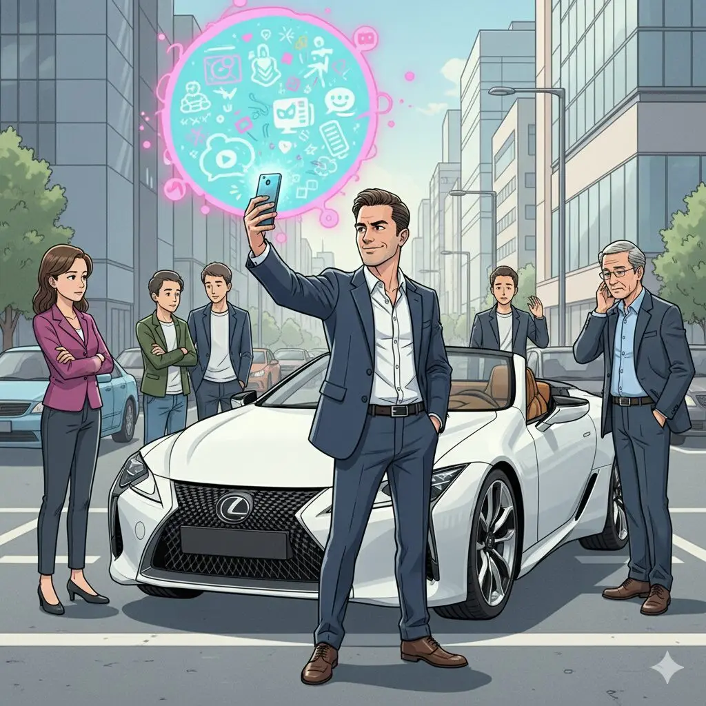 - 会話でのブランド強調: 「俺のレクサスが~」と、会話の中で不必要にブランド名を連呼する。